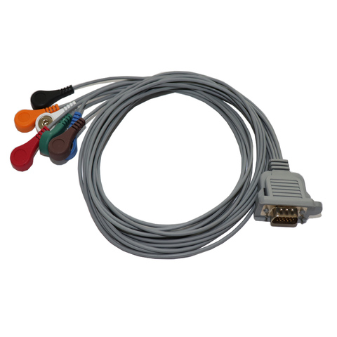One Piece ECG Cable with 3-ld Snap 12ft Straight Connector 6pin